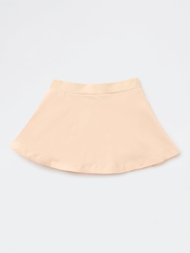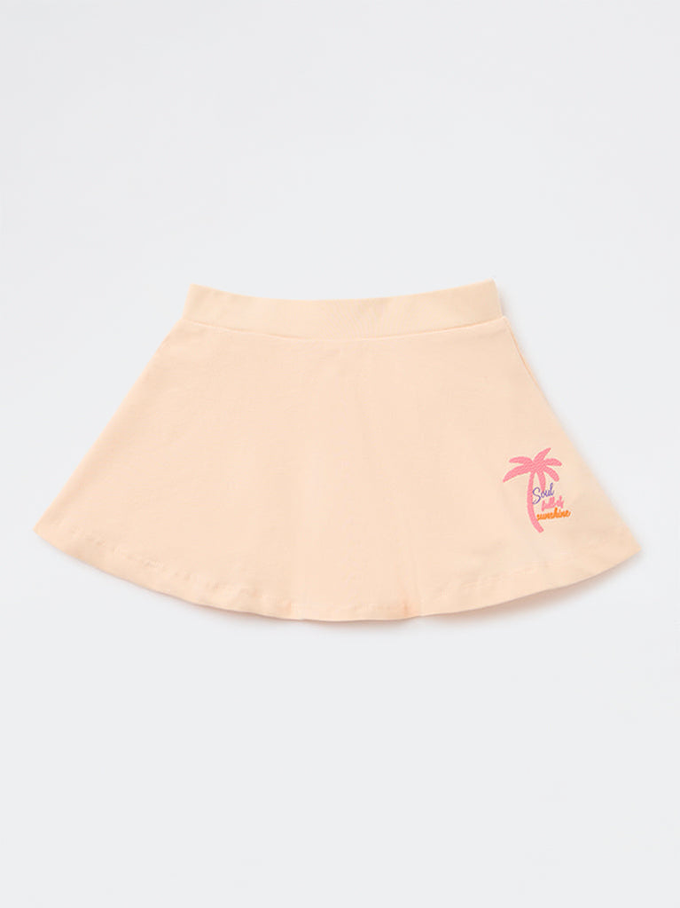 HOP Kids Girls Peach Printed High-Rise Cotton Skirt