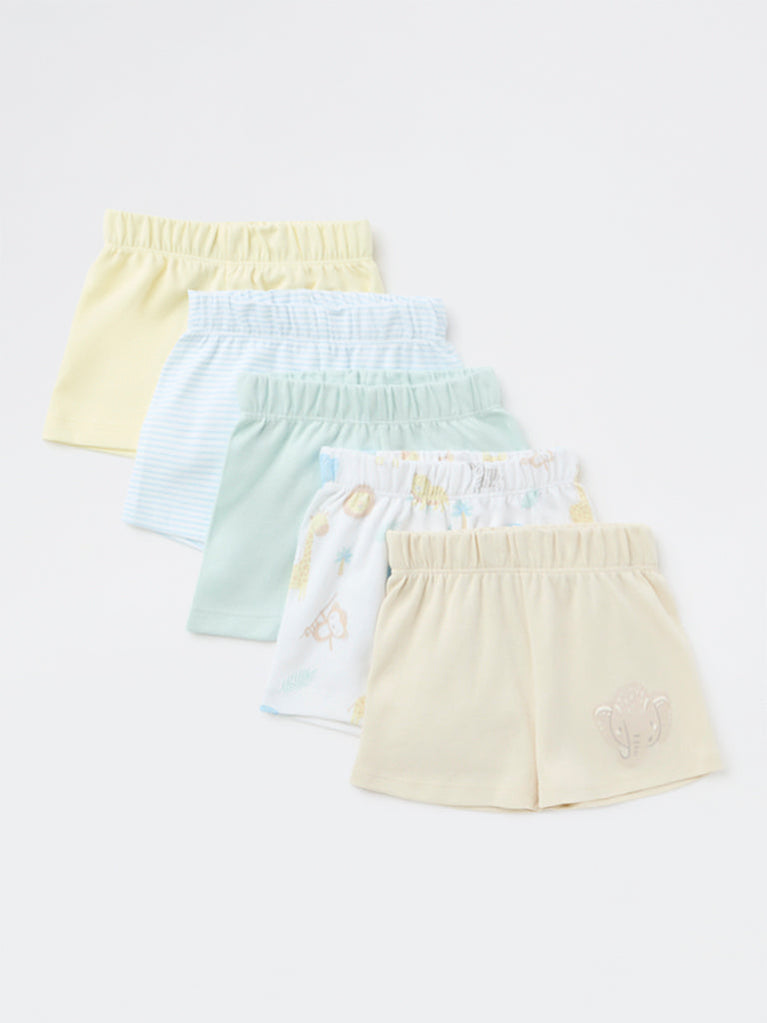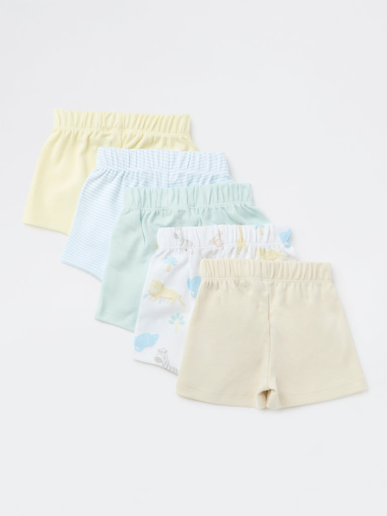 HOP Baby Boys Multicolour Printed Cotton Shorts - Pack of 5