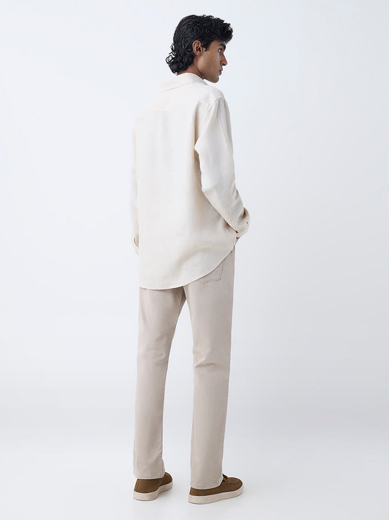 Ascot Beige Solid Relaxed-Fit Mid-Rise Jeans