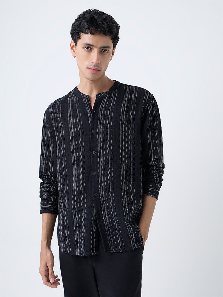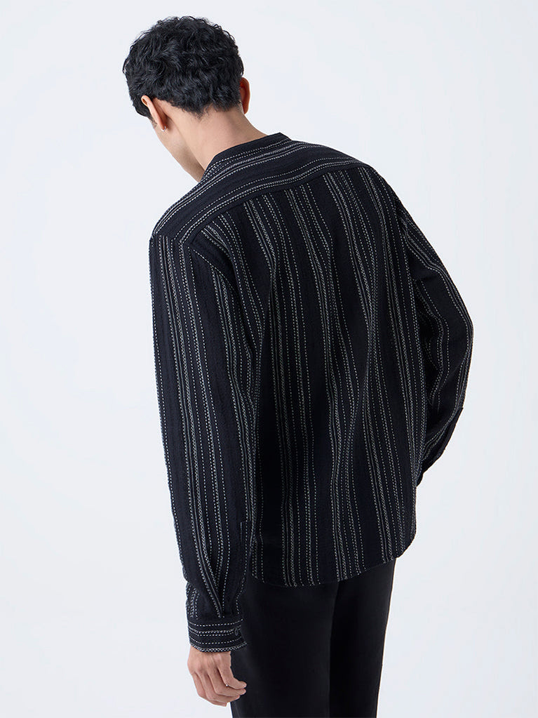 ETA Black Striped Relaxed-Fit Cotton Shirt