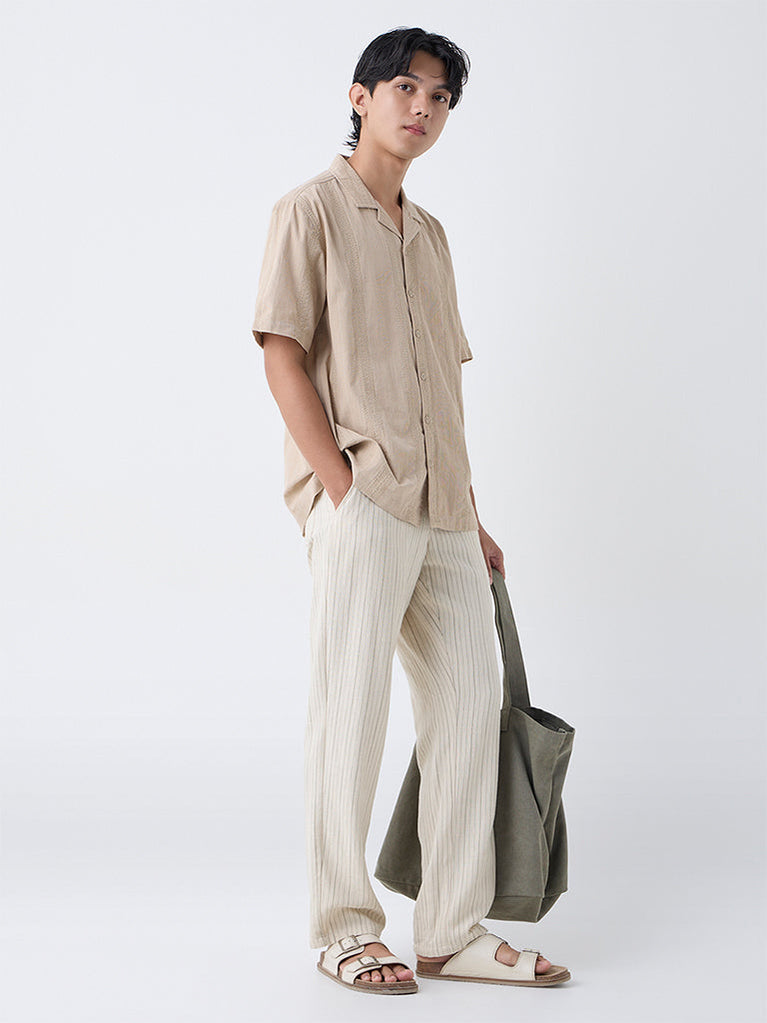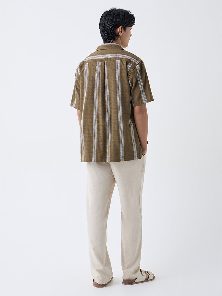 Ascot Dark Brown Striped Relaxed-Fit Linen Shirt