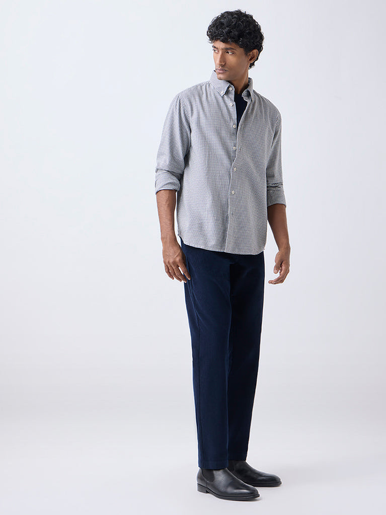 Ascot Blue Houndstooth Checks Relaxed-Fit Cotton Shirt