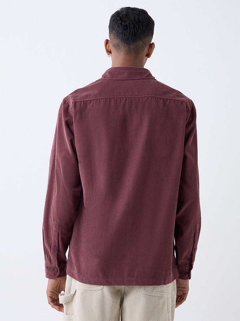 ETA Burgundy Embroidered Relaxed-Fit Cotton Shirt