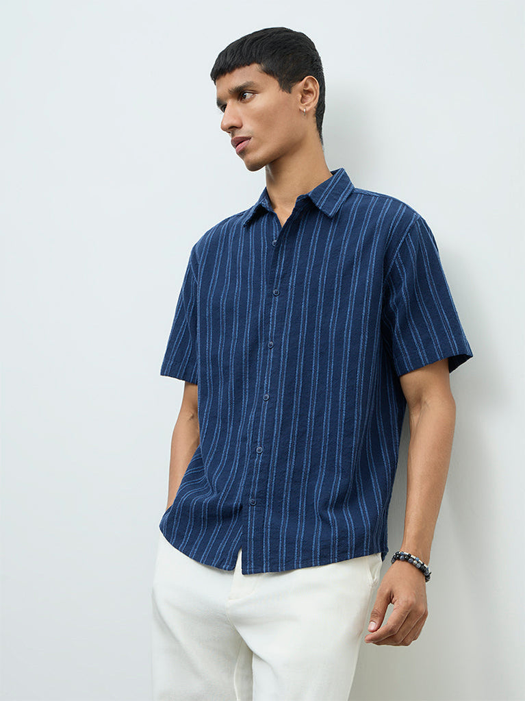 ETA Navy Striped Relaxed-Fit Shirt