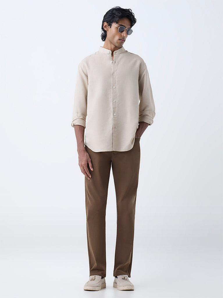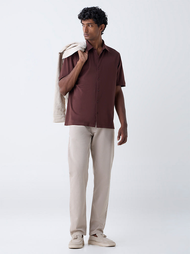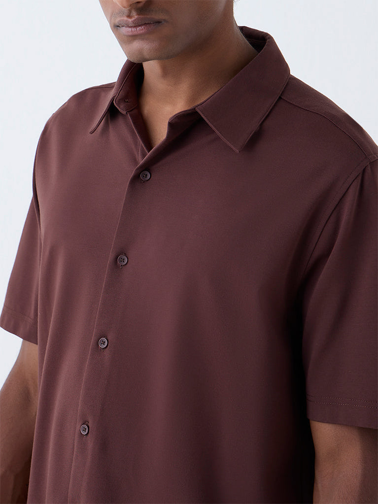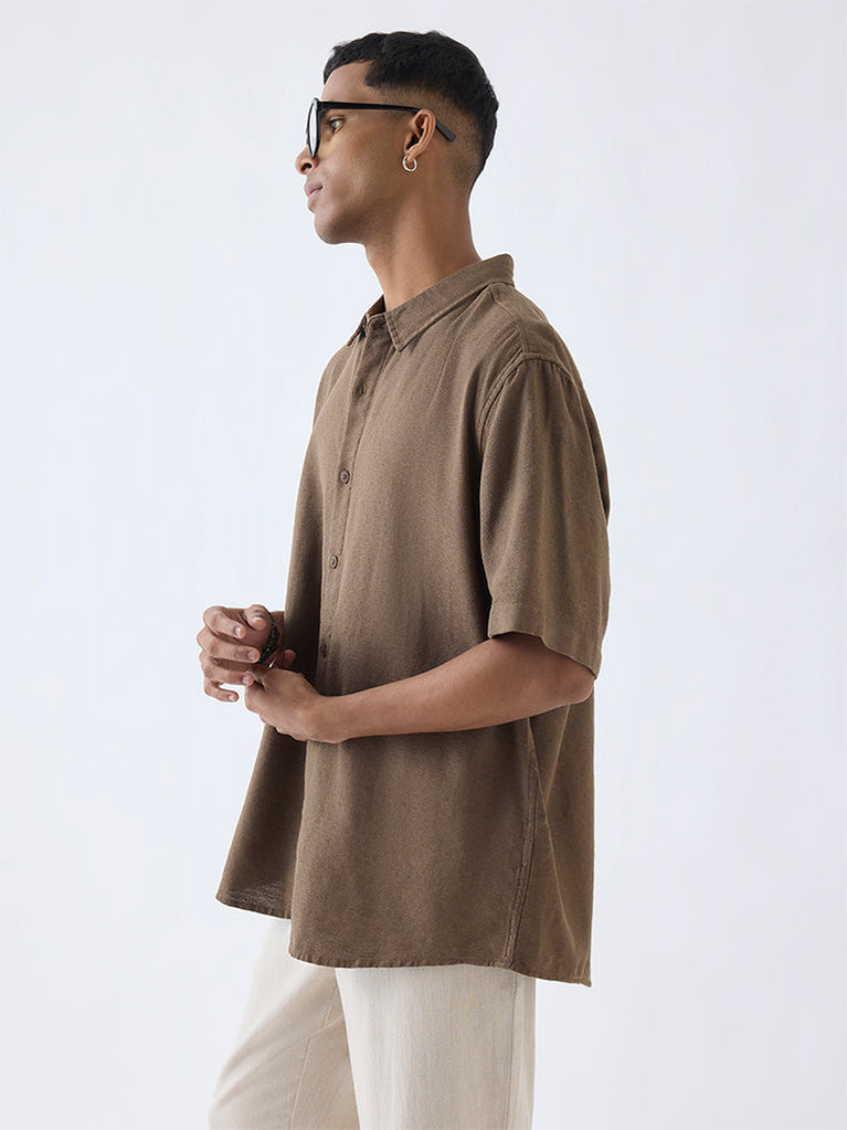 ETA Brown Solid Relaxed-Fit Cotton-Blend Shirt
