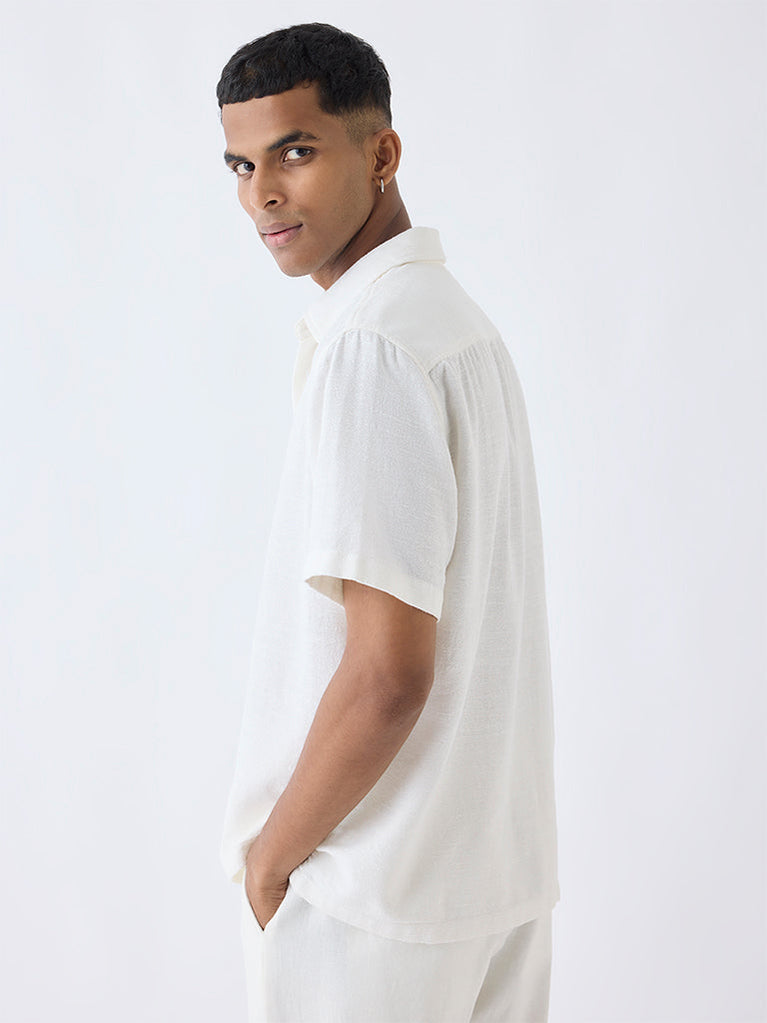 ETA Off-White Solid Relaxed-Fit Cotton-Blend Shirt