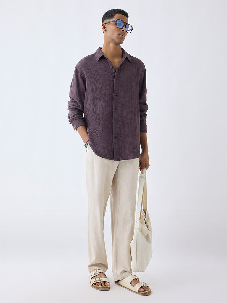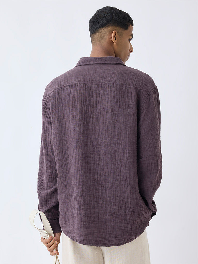 ETA Purple Crinkle-Textured Relaxed-Fit Cotton Shirt
