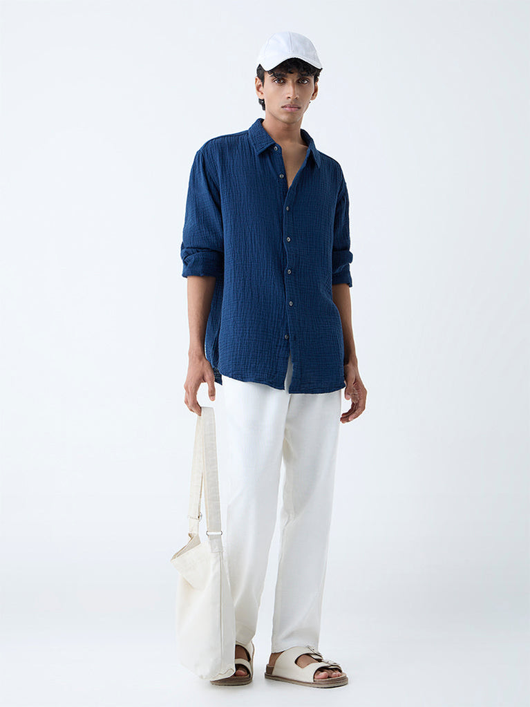 ETA Indigo Crinkle-Textured Relaxed-Fit Cotton Shirt