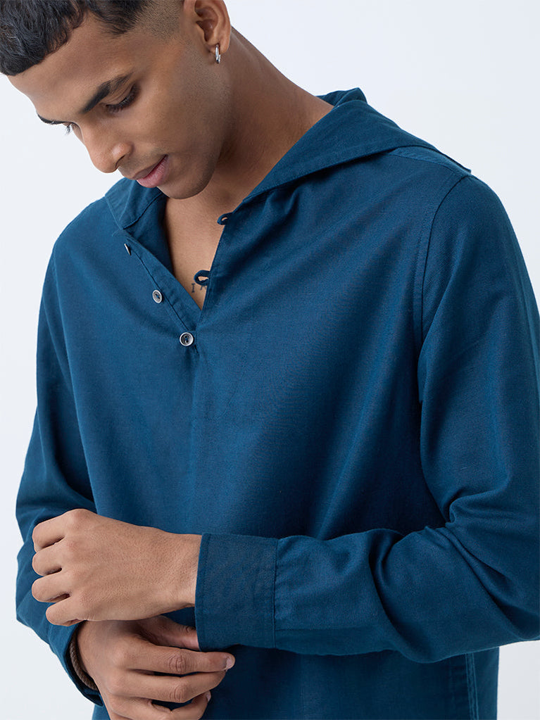 ETA Dark Teal Solid Relaxed-Fit Cotton-Blend Hooded Shirt