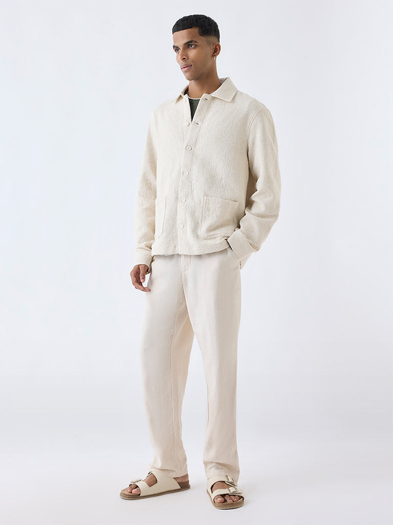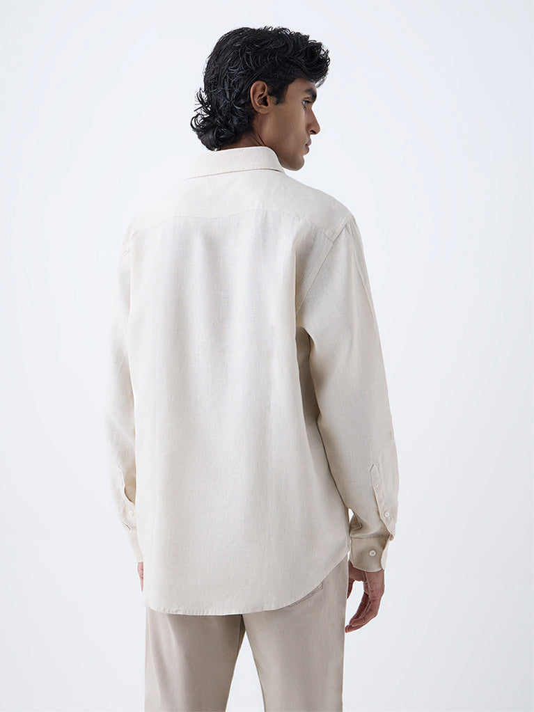 Ascot Cream Solid Relaxed-Fit Linen Shirt