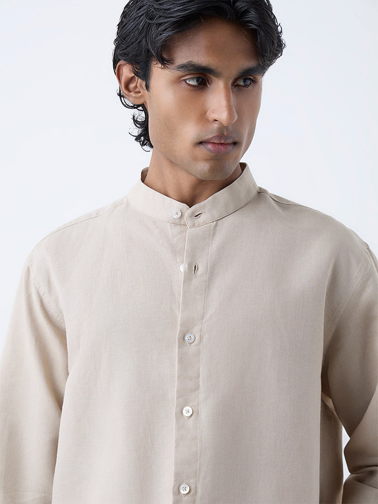 Ascot Beige Solid Relaxed-Fit Linen-Blend Shirt
