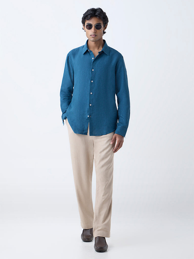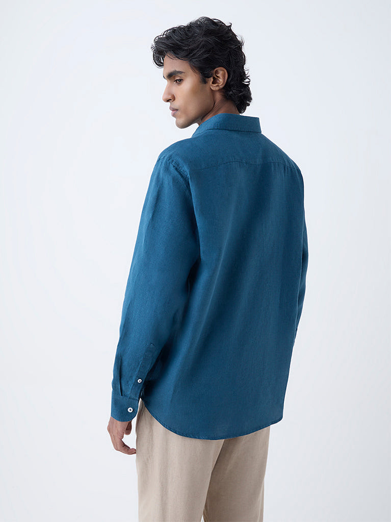 Ascot Teal Solid Relaxed-Fit Linen Shirt