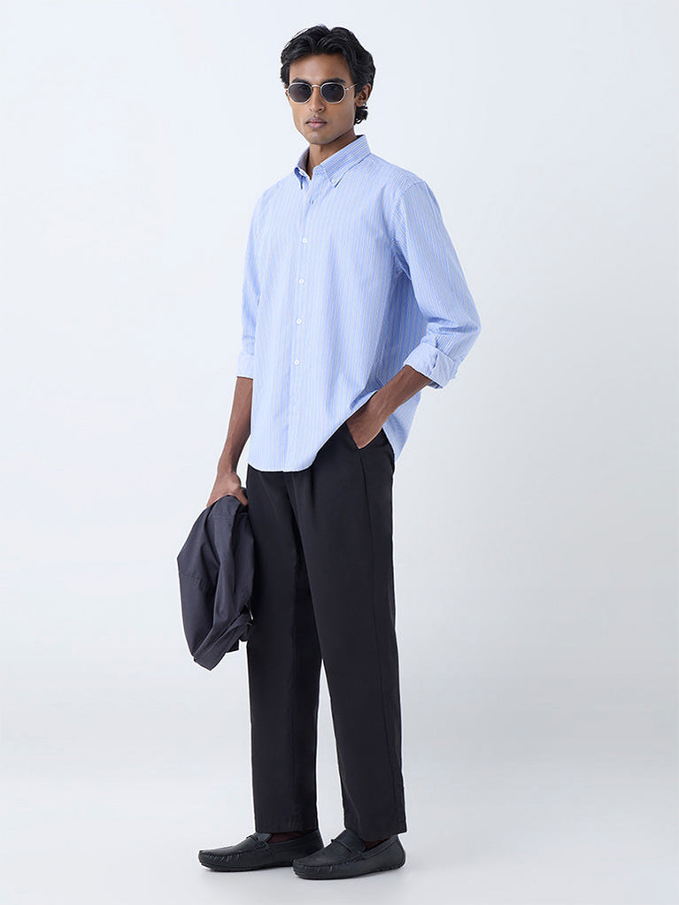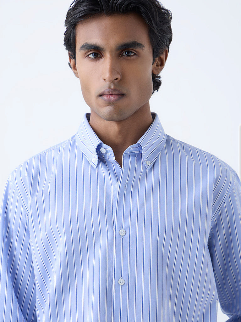 Ascot Blue Striped Relaxed-Fit Cotton Shirt