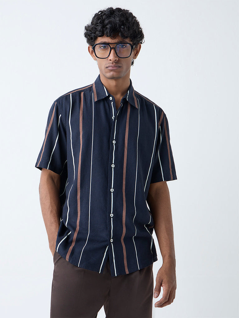 Ascot Navy Striped Relaxed-Fit Shirt