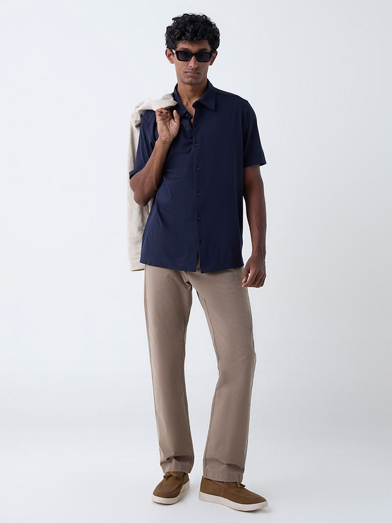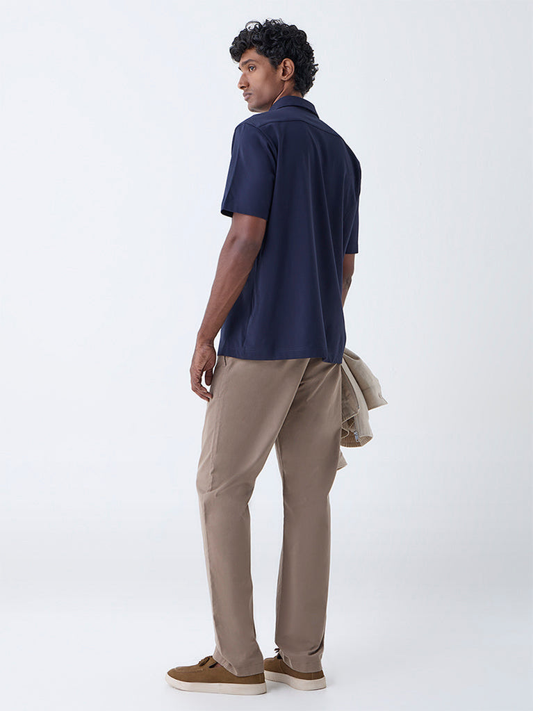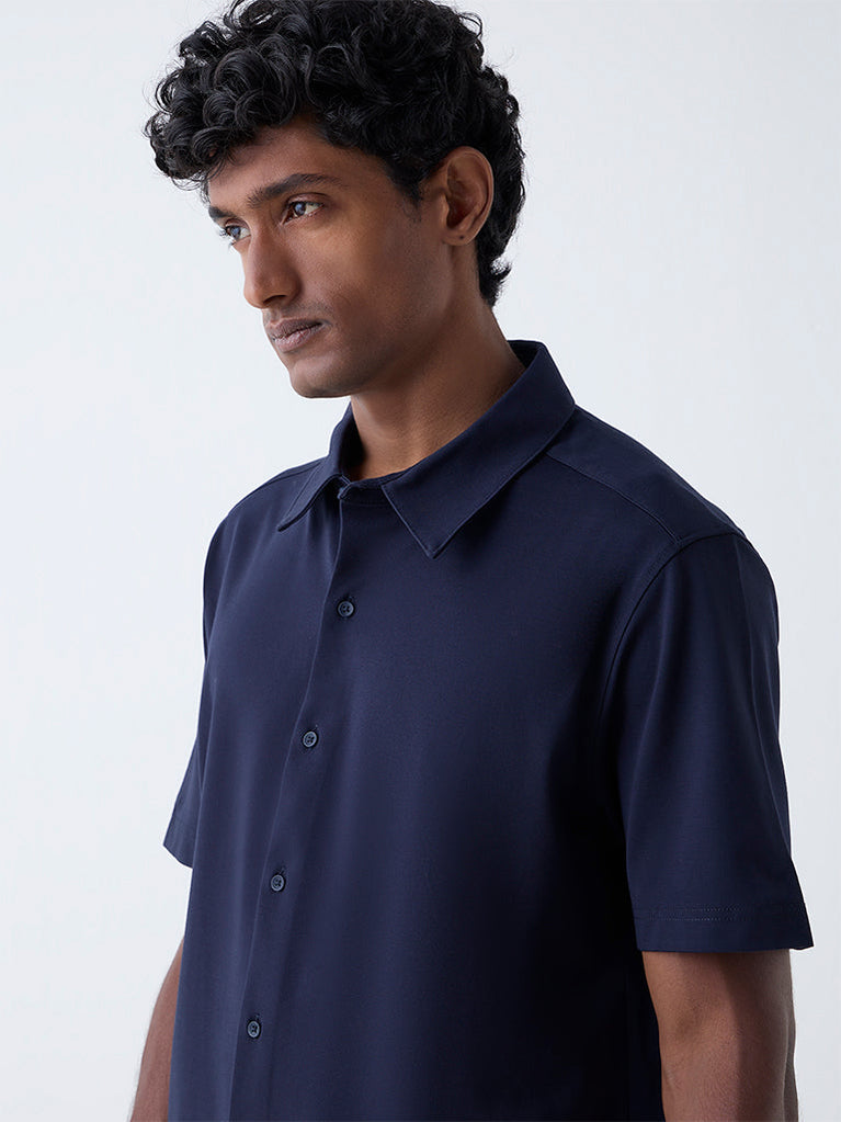 Ascot Navy Solid Relaxed-Fit Shirt