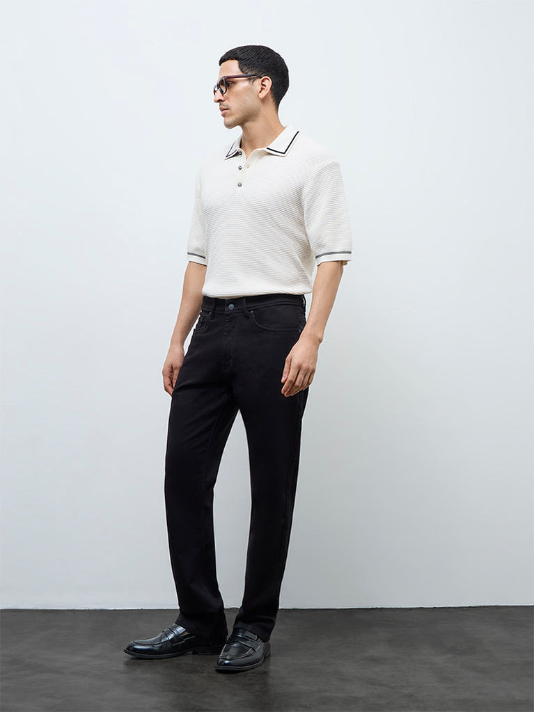 Ascot Black Cable-Knit Relaxed-Fit Cotton Polo T-Shirt
