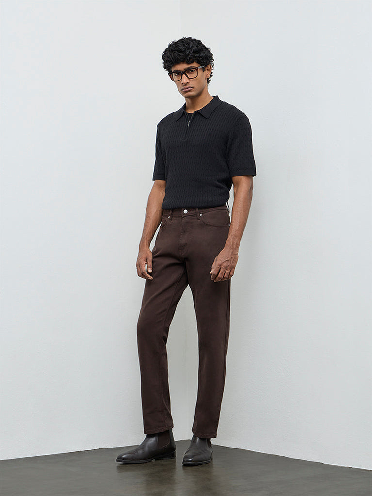 Ascot Dark Brown Textured Relaxed-Fit Cotton T-Shirt