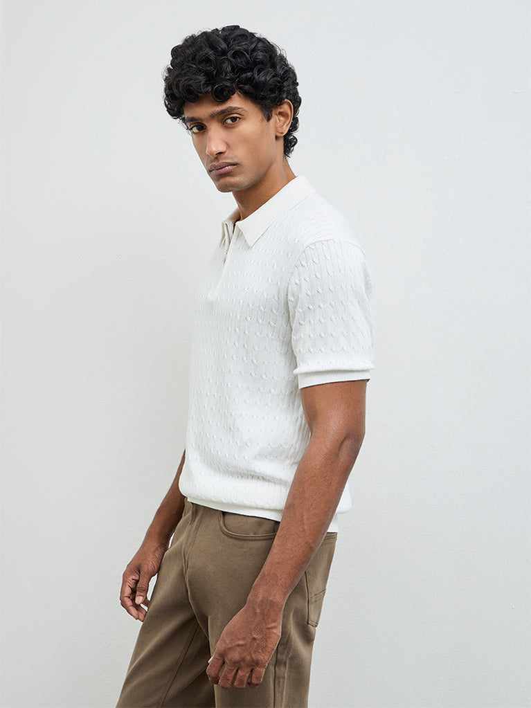 Ascot White Textured Relaxed-Fit Cotton T-Shirt