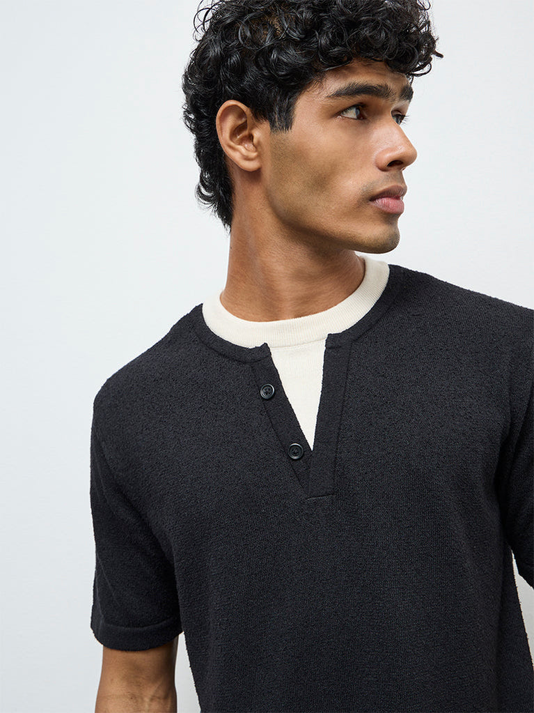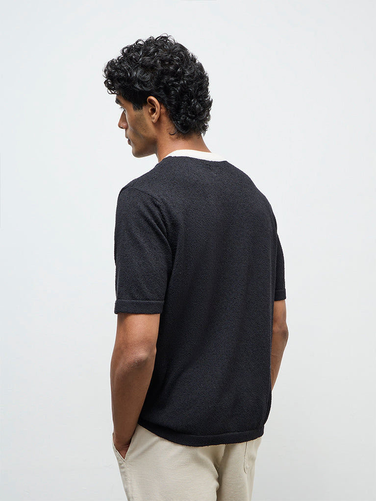 ETA Black Textured Relaxed-Fit T-Shirt