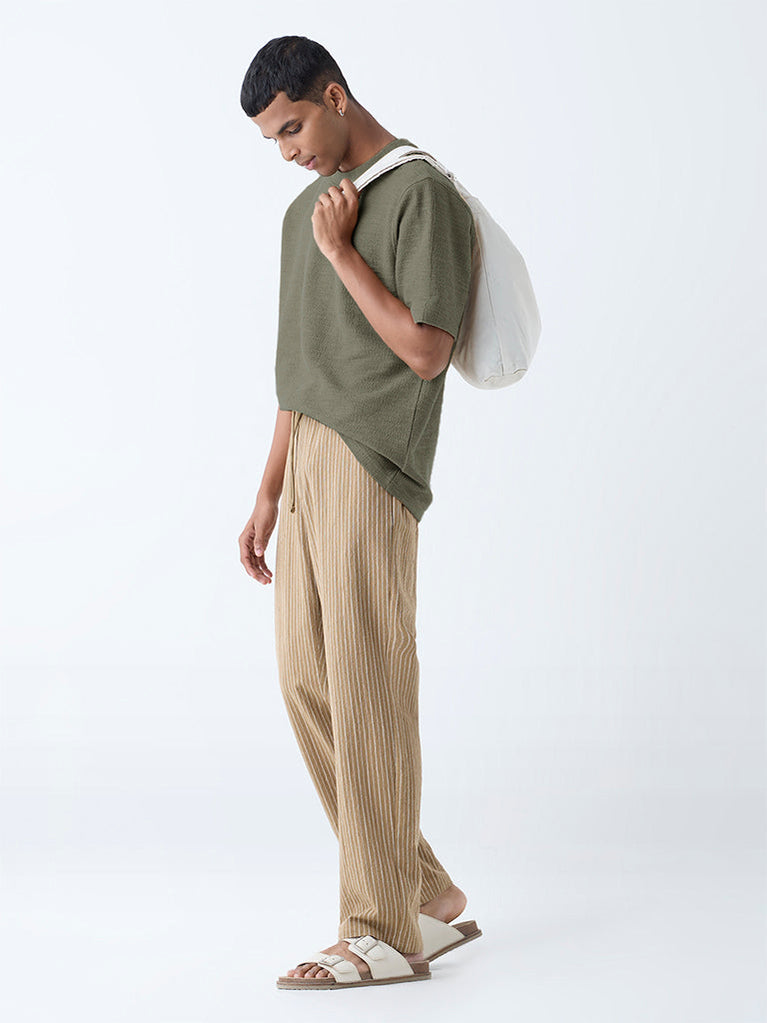 ETA Olive Woven-Textured Relaxed-Fit Cotton T-Shirt