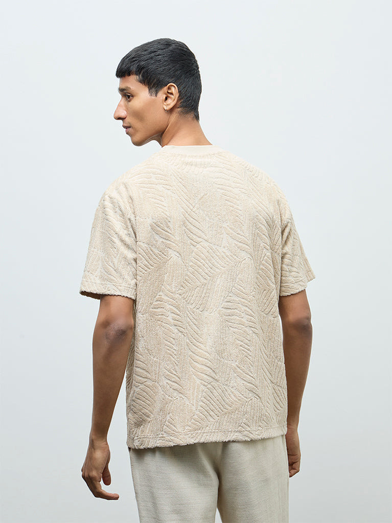 ETA Beige Textured Relaxed-Fit Cotton-Blend T-Shirt