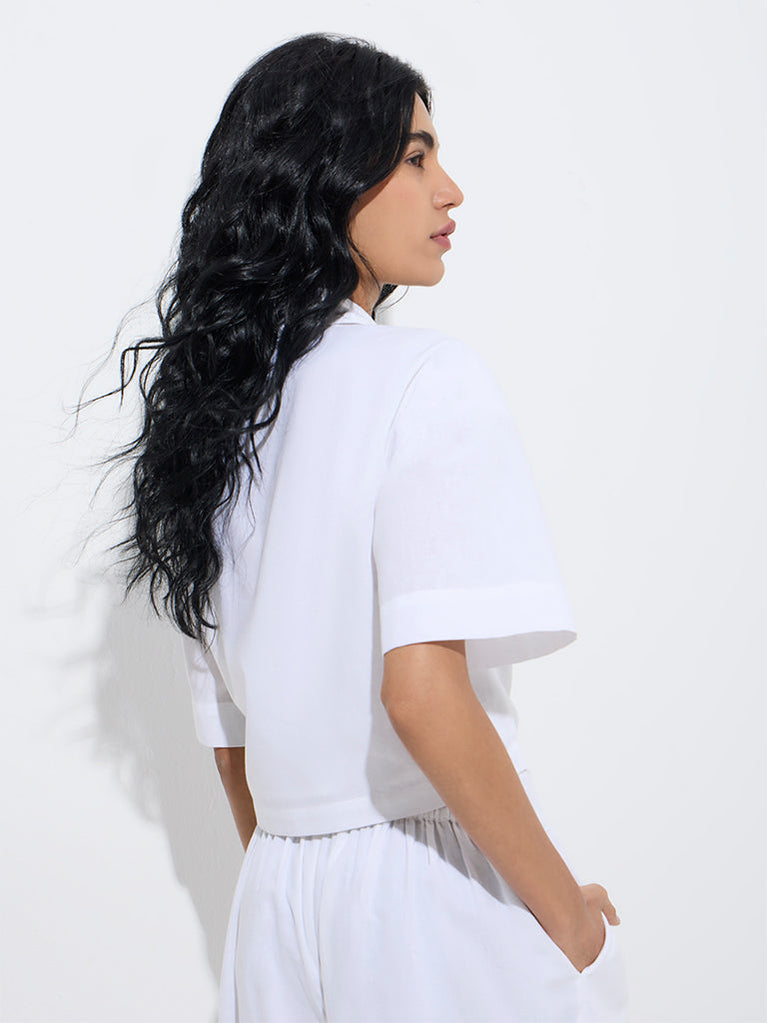 Ascot White Relaxed-Fit Linen-Blend Shirt