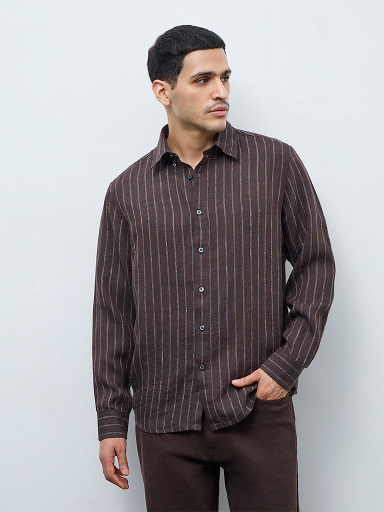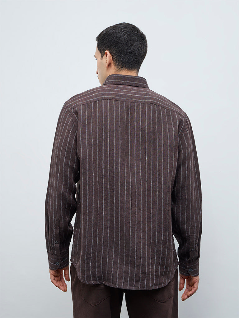 Ascot Dark Brown Striped Relaxed-Fit Linen Shirt