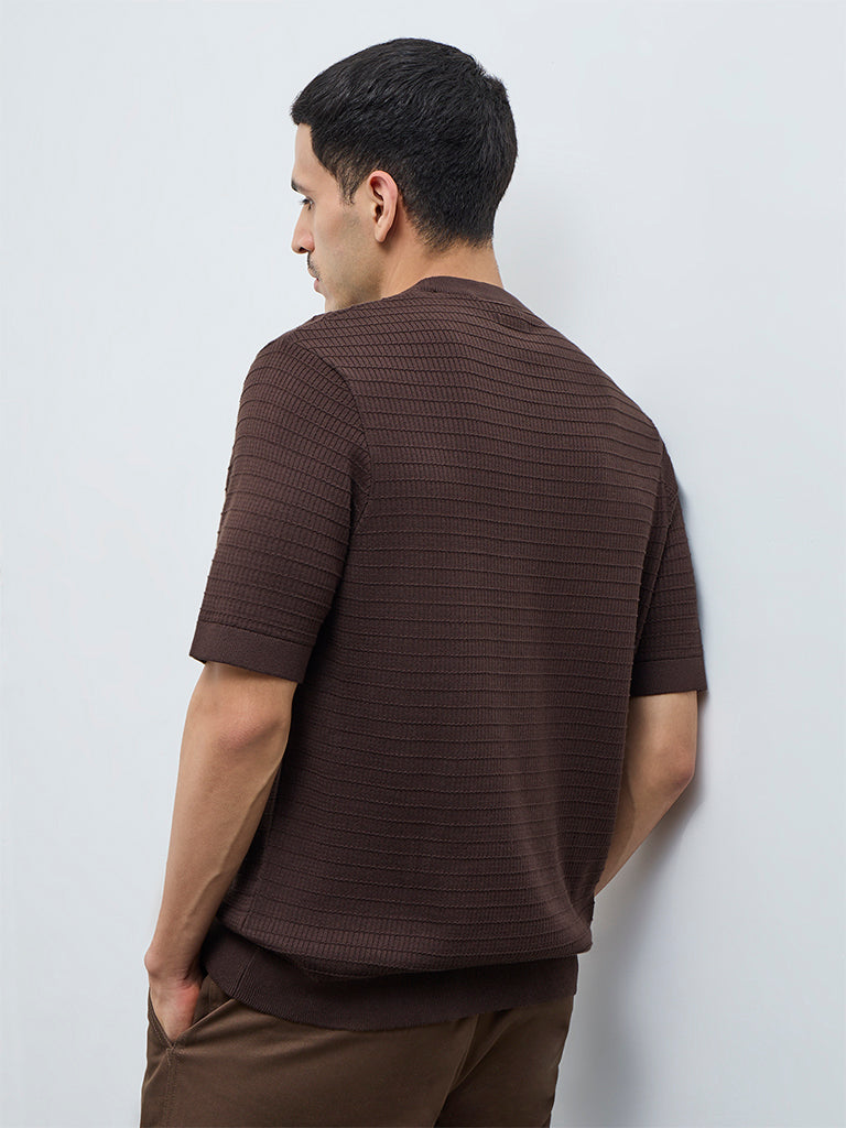 Ascot Dark Brown Textured Relaxed-Fit Cotton T-Shirt