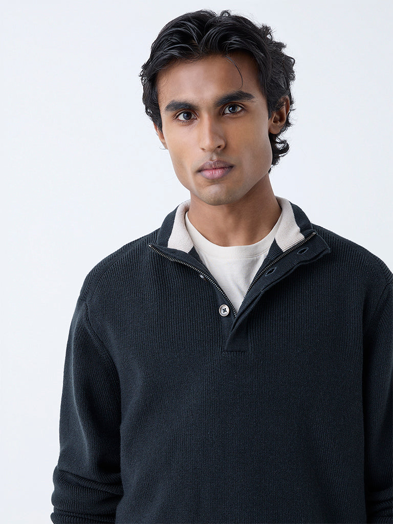 Enhance your winter layering with this emerald green sweater from Ascot. Spun from a textured knit, it features a high neck with zip-and-button closure and full sleeves, all shaped in a relaxed fit. A versatile essential, it brings warmth and understated polish to modern wardrobes.