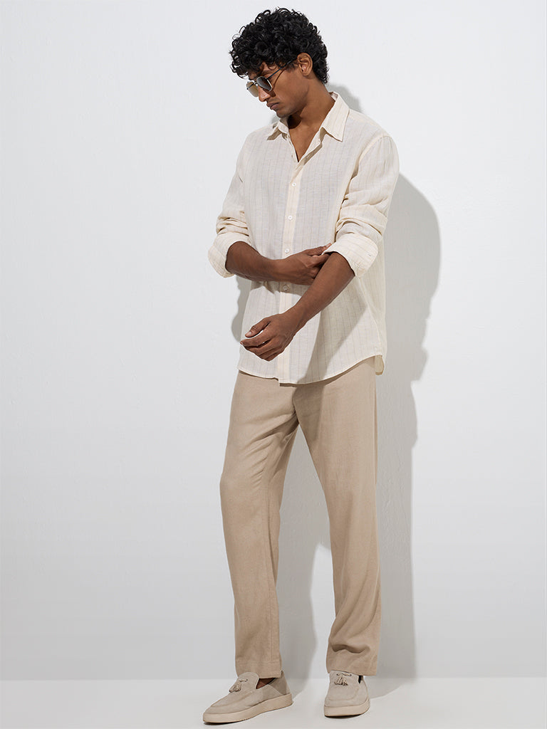 Ascot Light Yellow Striped Relaxed-Fit Linen Shirt