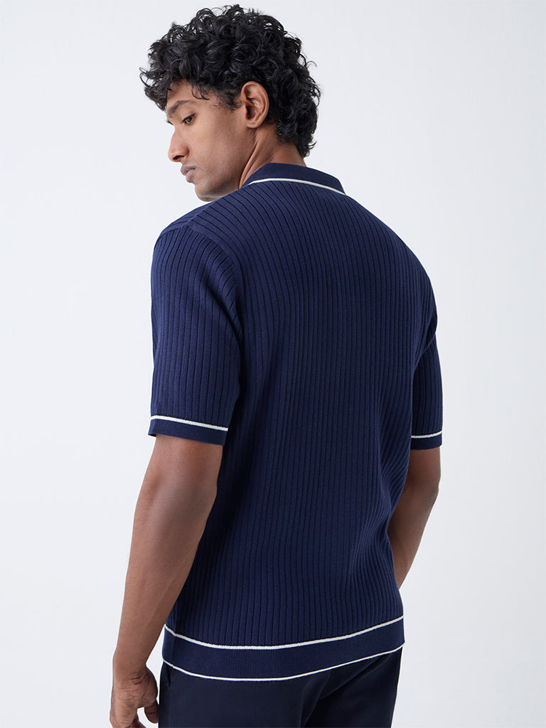 Ascot Navy Ribbed-Textured Relaxed-Fit Cotton-Blend T-Shirt