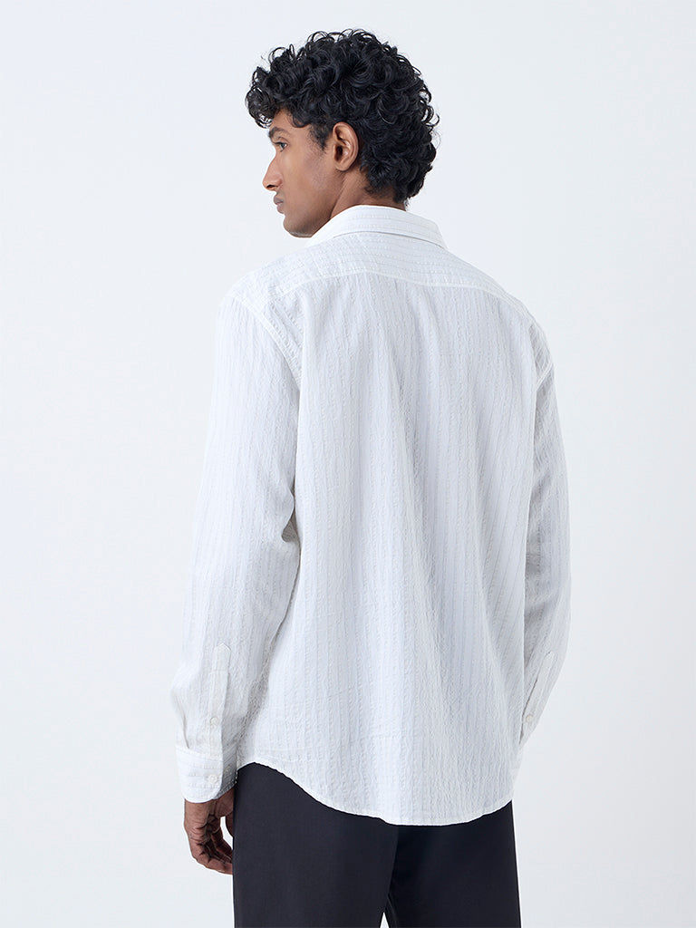 Ascot White Striped Relaxed-Fit Cotton Shirt