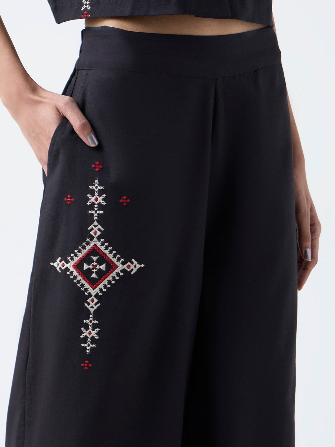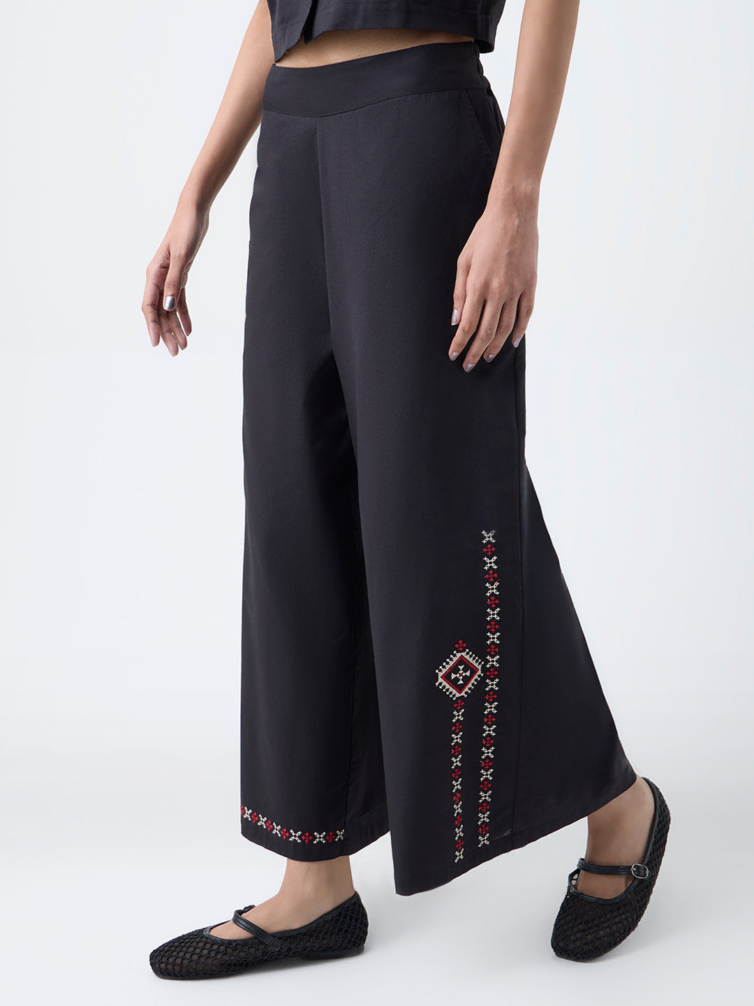 Bombay Paisley Black Embroidered Cotton-Blend Pants