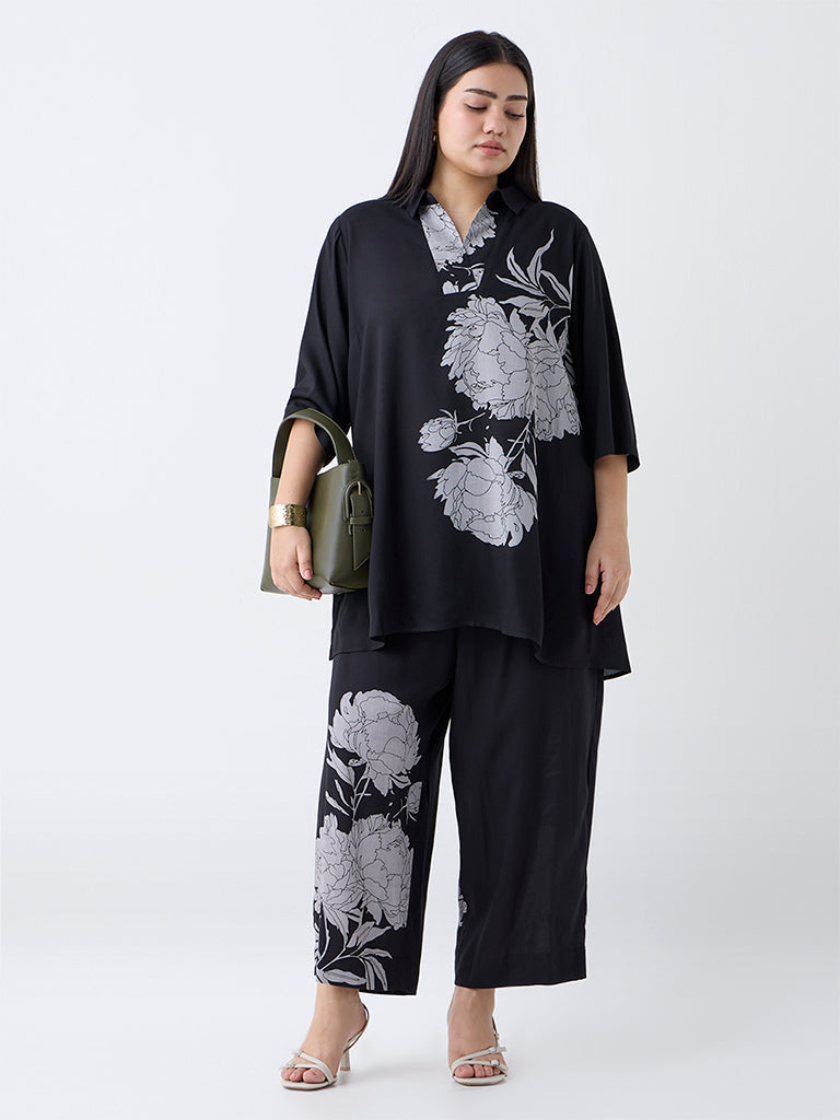 Diza Black Floral Printed Tunic