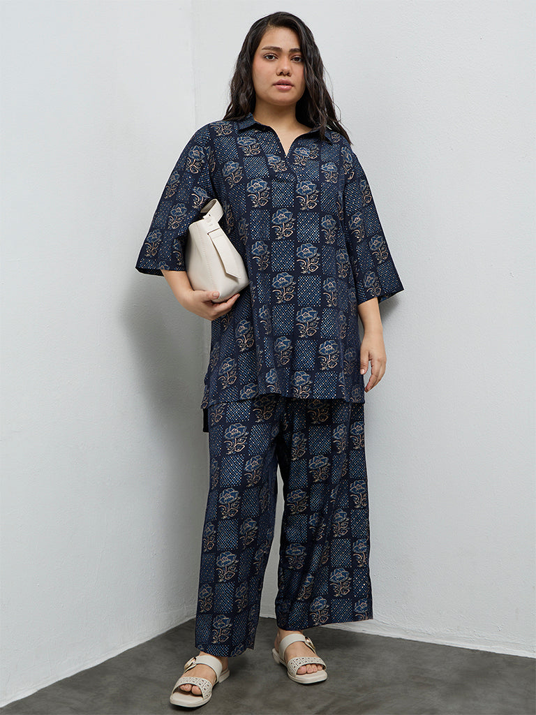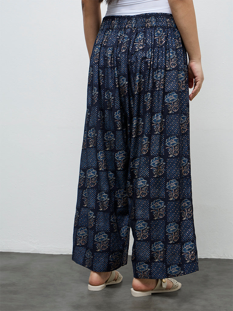 These dark blue ethnic pants from Diza are enlivened with floral prints that lend the silhouette a distinctive edge. Crafted from soft fabric, they offer a smooth feel against the skin for day-long ease. An elasticated waistband supports comfortable movement, while side pockets introduce functional practicality. Designed to complement everyday kurtas and tunics with ease and intention.
