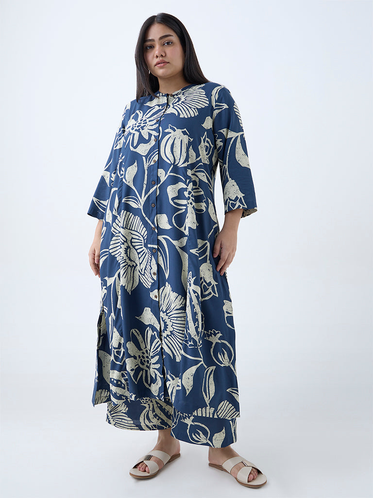 Striking the right balance between tradition and ease, this indigo kurta from Diza flaunts botanical prints that stand out against its deep base. Cut in a flattering A-line silhouette from a lightweight fabric, it’s styled with a mandarin collar, button placket, and three-quarter sleeves. A thoughtfully placed slip pocket adds practical utility.