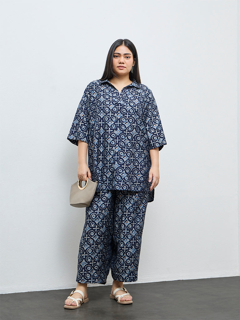 Diza Indigo Printed High-Low Tunic
