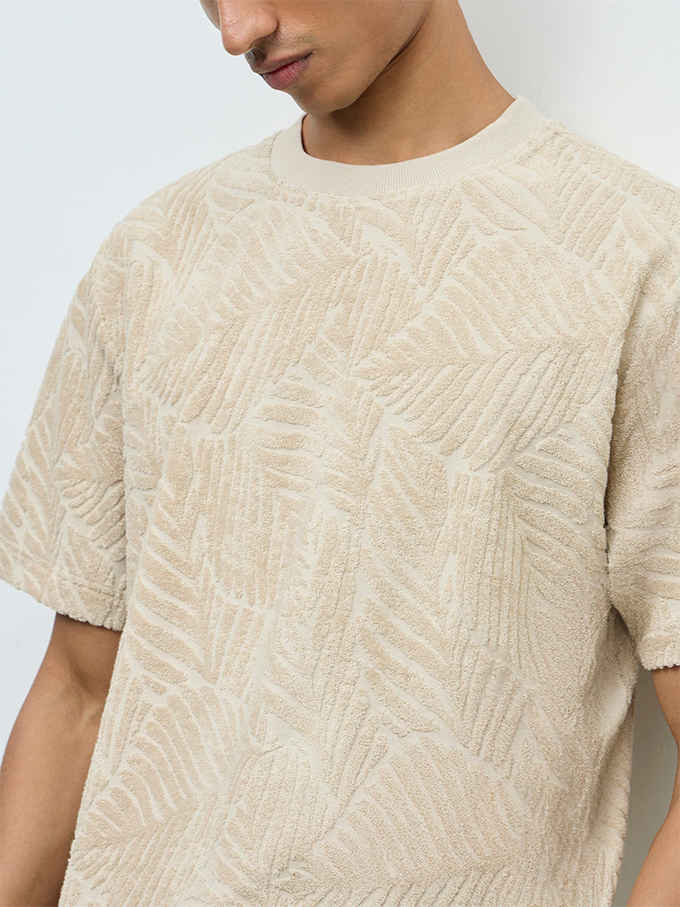 ETA Beige Textured Relaxed-Fit Cotton-Blend T-Shirt