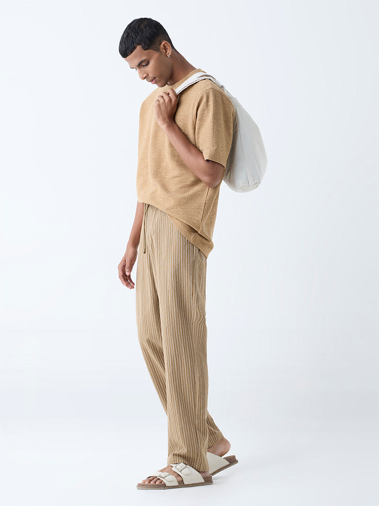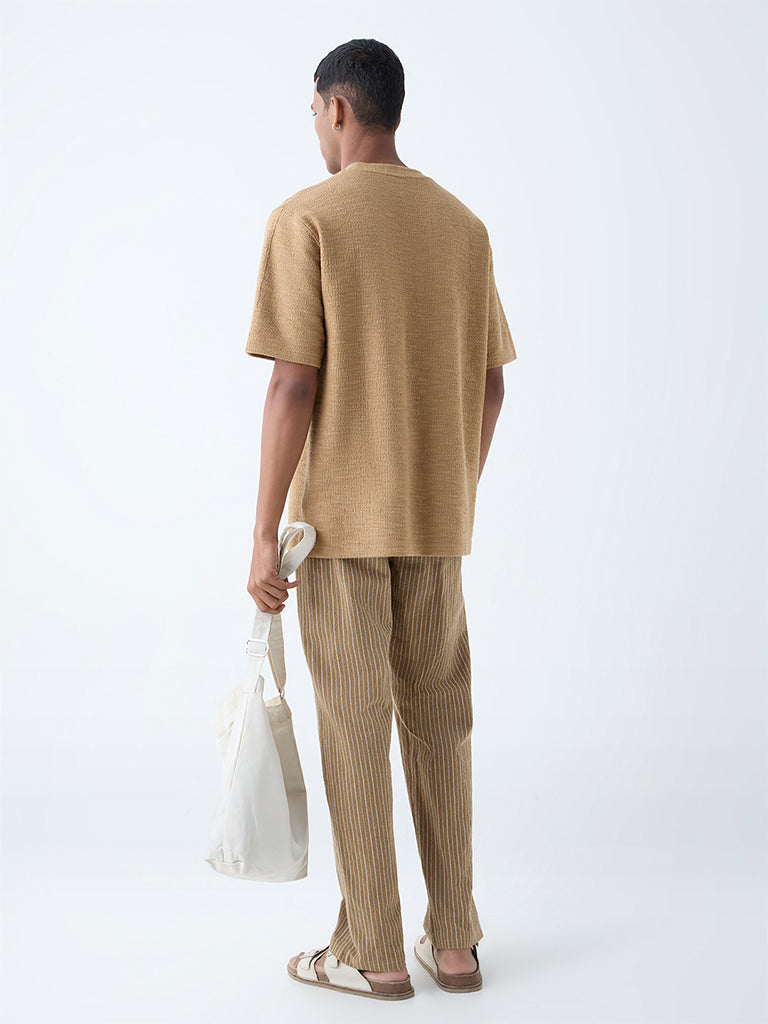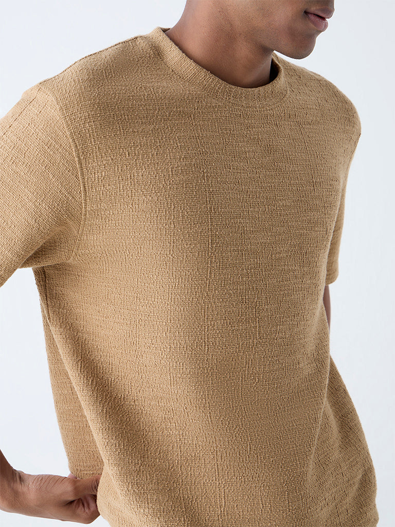 ETA Brown Self-Textured Relaxed-Fit Cotton-Blend T-Shirt