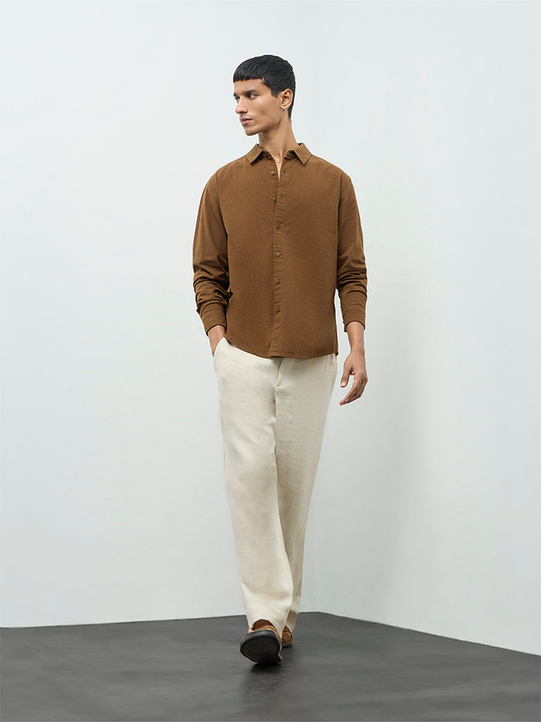 ETA Brown Textured Relaxed-Fit Cotton Shirt