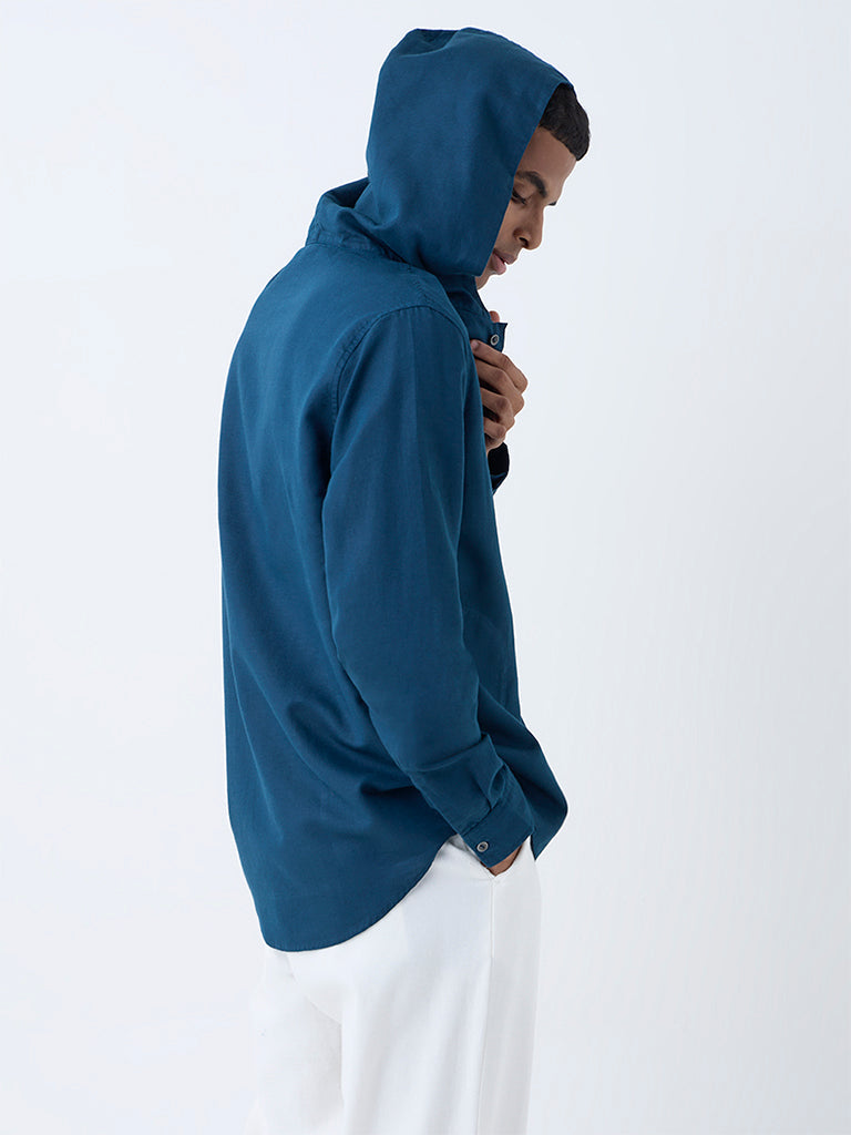 ETA Dark Teal Solid Relaxed-Fit Cotton-Blend Hooded Shirt