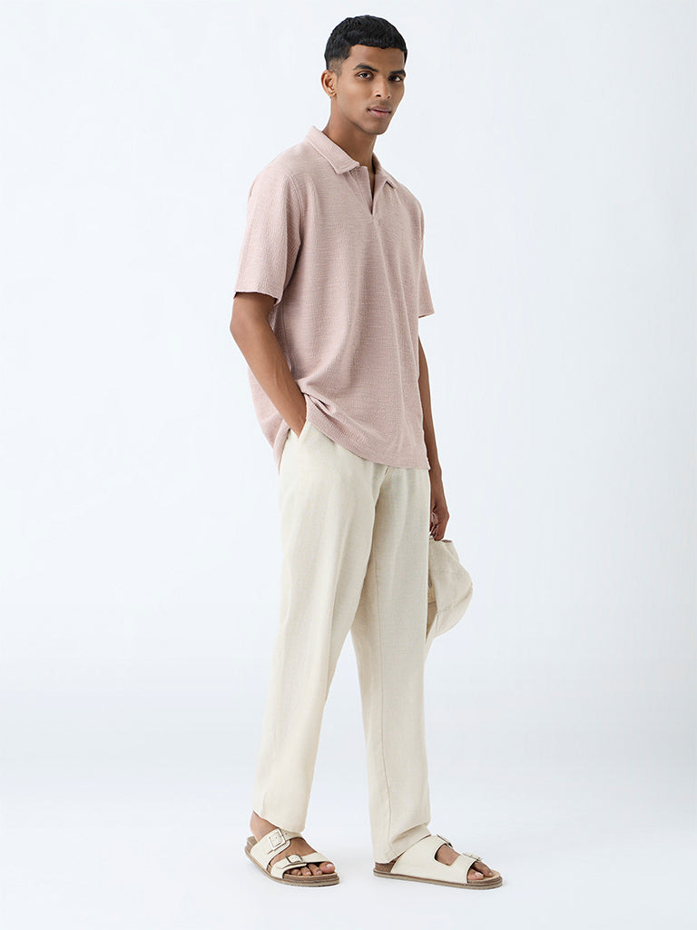 Amplify your casual rotation with this dusty pink t-shirt from ETA. Constructed from a premium cotton-blend fabric with a subtle textured finish, it is shaped in a relaxed silhouette a polo collar and short sleeves.