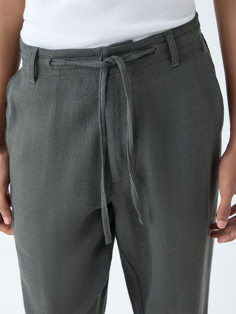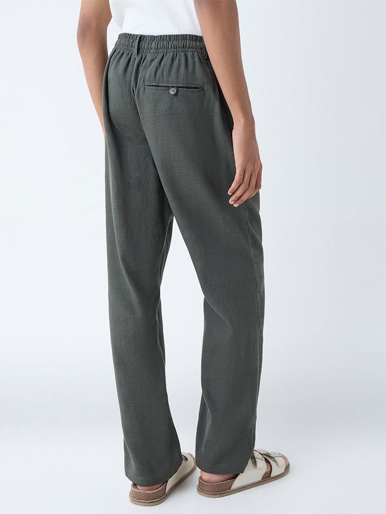 Cut in a relaxed silhouette, these olive chinos from ETA are designed for all-day ease. Its breathable composition offers everyday comfort, while the buttoned waistband, adjustable drawcords, belt loops, zip fly, and multiple pockets deliver utility with polish.