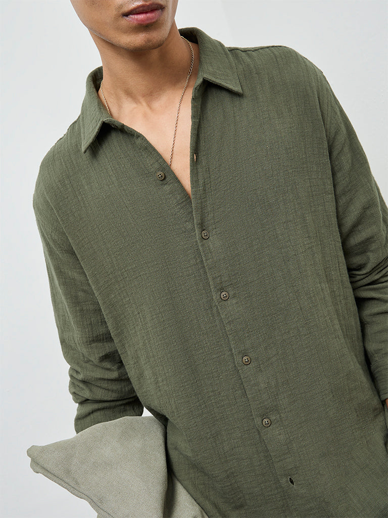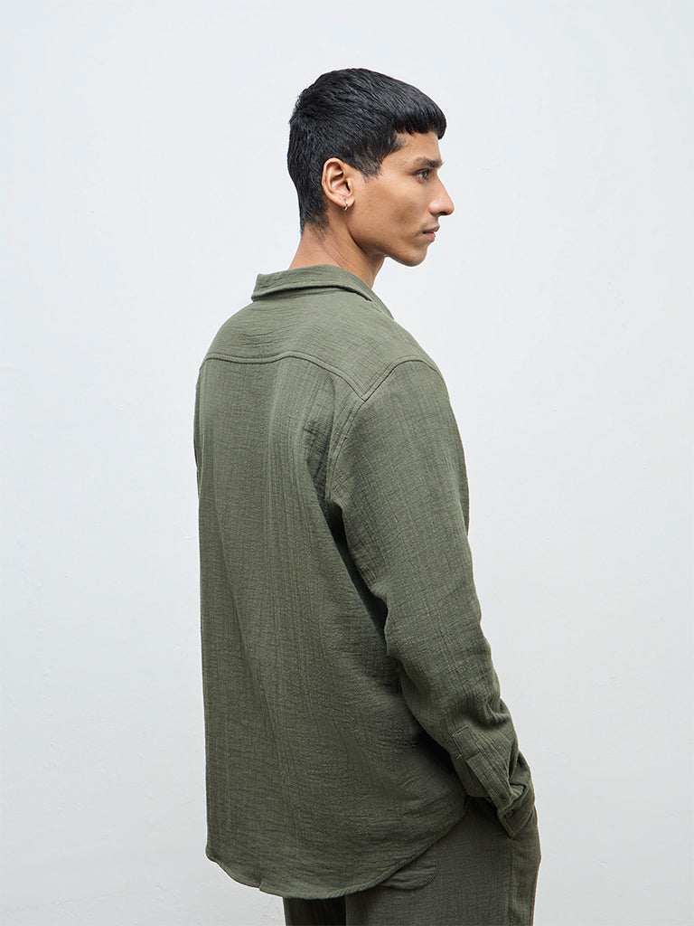 ETA Olive Textured Relaxed-Fit Cotton Shirt