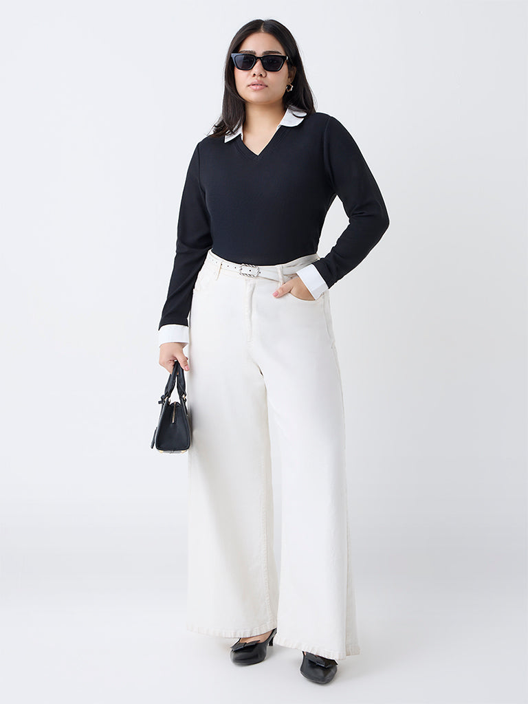 This black T-shirt from Gia is crafted from a breathable, soft-touch fabric that feels easy through long hours. The contrast collar adds a clean pop of definition, while the full sleeves offer comfortable coverage. A versatile everyday essential designed to fit and flatter with minimal effort.
