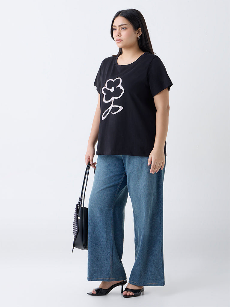 A casual essential from Gia, this black cotton t-shirt features a striking floral print in a contrasting hue. Designed with a round neck and short sleeves, it offers effortless versatility for everyday styling.