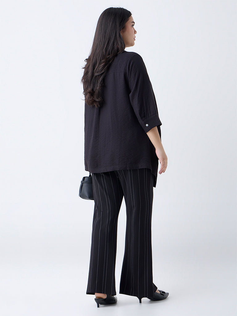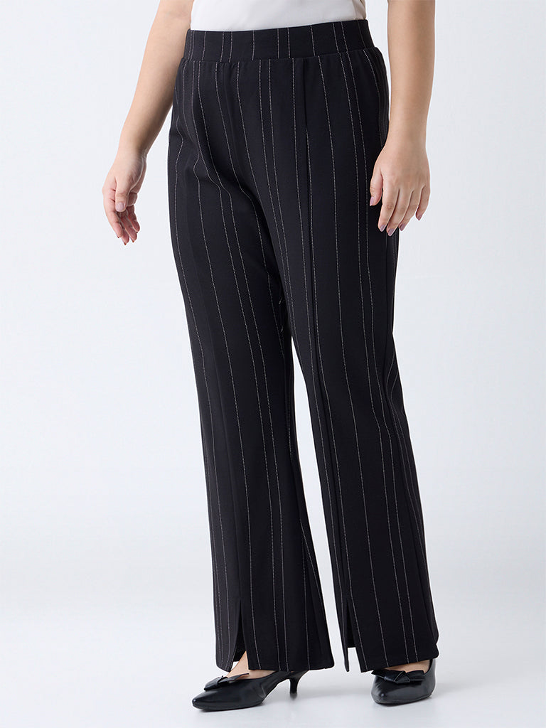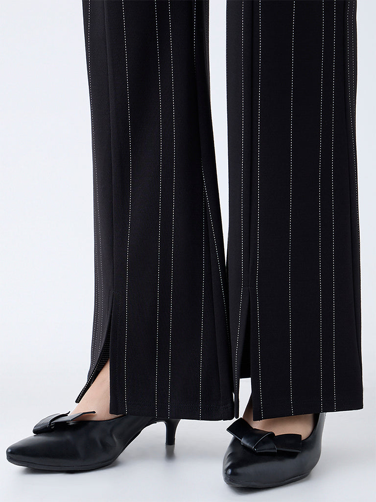 A modern essential, these black trousers by Gia offer timeless tailoring and contemporary ease. The structured waistband sits comfortably at the waist, while the classic pinstripe pattern adds subtle refinement. Designed with a straight cut, they move seamlessly from office-ready edits to polished casual pairings.