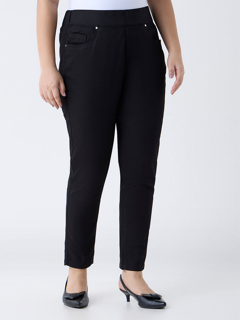 Gia Black Solid High-Rise Cotton-Blend Jeggings