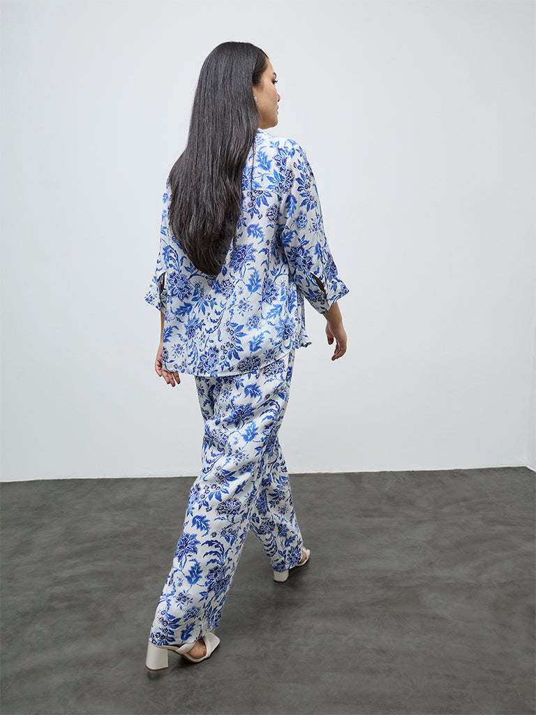 Gia Blue Floral High-Rise Trousers
