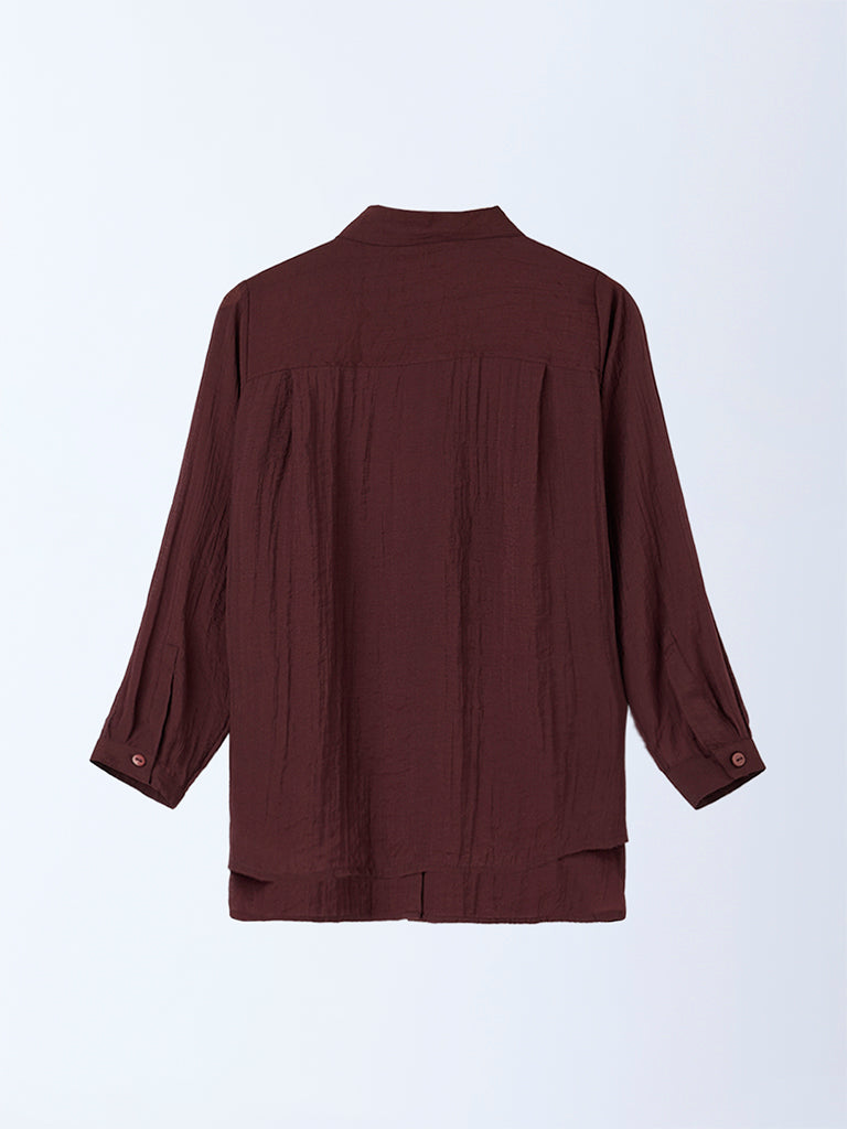 An eye-catching design from Gia, this brown shirt features embellished studs across the front, elevating the minimal silhouette. Framed with a shirt collar, a concealed button placket and full sleeves, it is crafted from soft, lightweight fabric for a breathable and sumptuous feel.